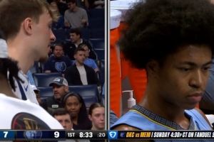 德克萨斯大学橄榄球队成员观战马刺 星三代曼宁与文班合影换球衣